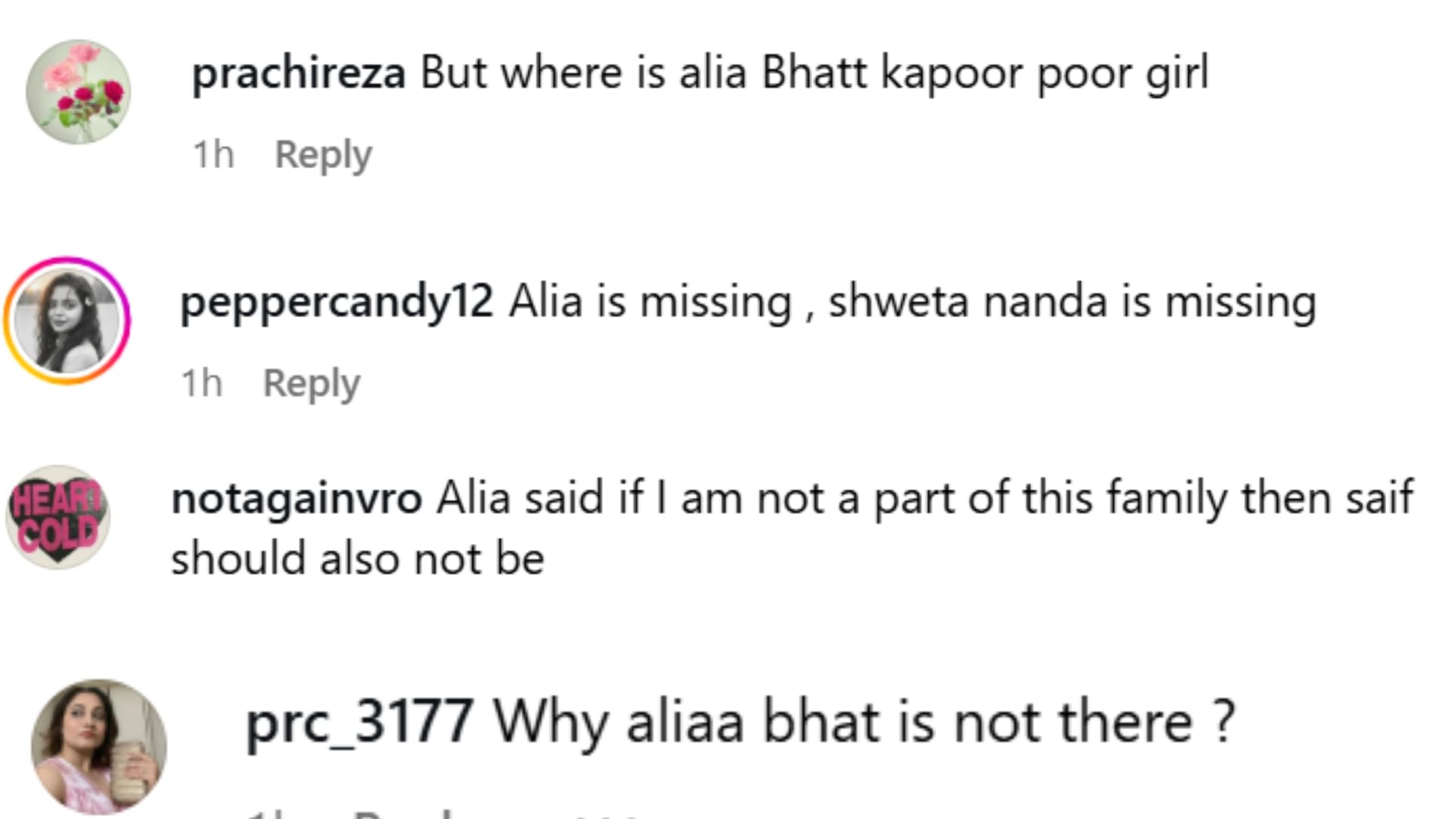ટ્રેલરમાં કરીના કપૂર સાથે તેના પતિ સૈફ અલી ખાન પણ જોવા મળે છે, જે કપૂર પરિવારના જમાઈ તરીકે પરિવારનો હિસ્સો છે. પરંતુ રણબીર કપૂરની પત્ની આલિયા ભટ્ટની ગેરહાજરીએ ચાહકોને નારાજ કર્યા છે. સોશિયલ મીડિયા પર યુઝર્સે પ્રશ્નો ઉઠાવ્યા છે. "આલિયા ક્યાં છે?" કેટલાકે તો આને લઈને પરિવારમાં અંતરની અફવાઓ પણ ફેલાવી છે.