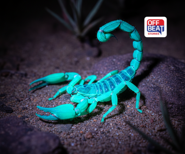 અલ્ટ્રાવાયોલેટ પ્રકાશમાં ચમકે છે વીંછીનું શરીર