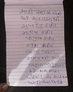 સુસાઇડ નોટ લખી આત્મહત્યાનો પ્રયાસ કર્યો